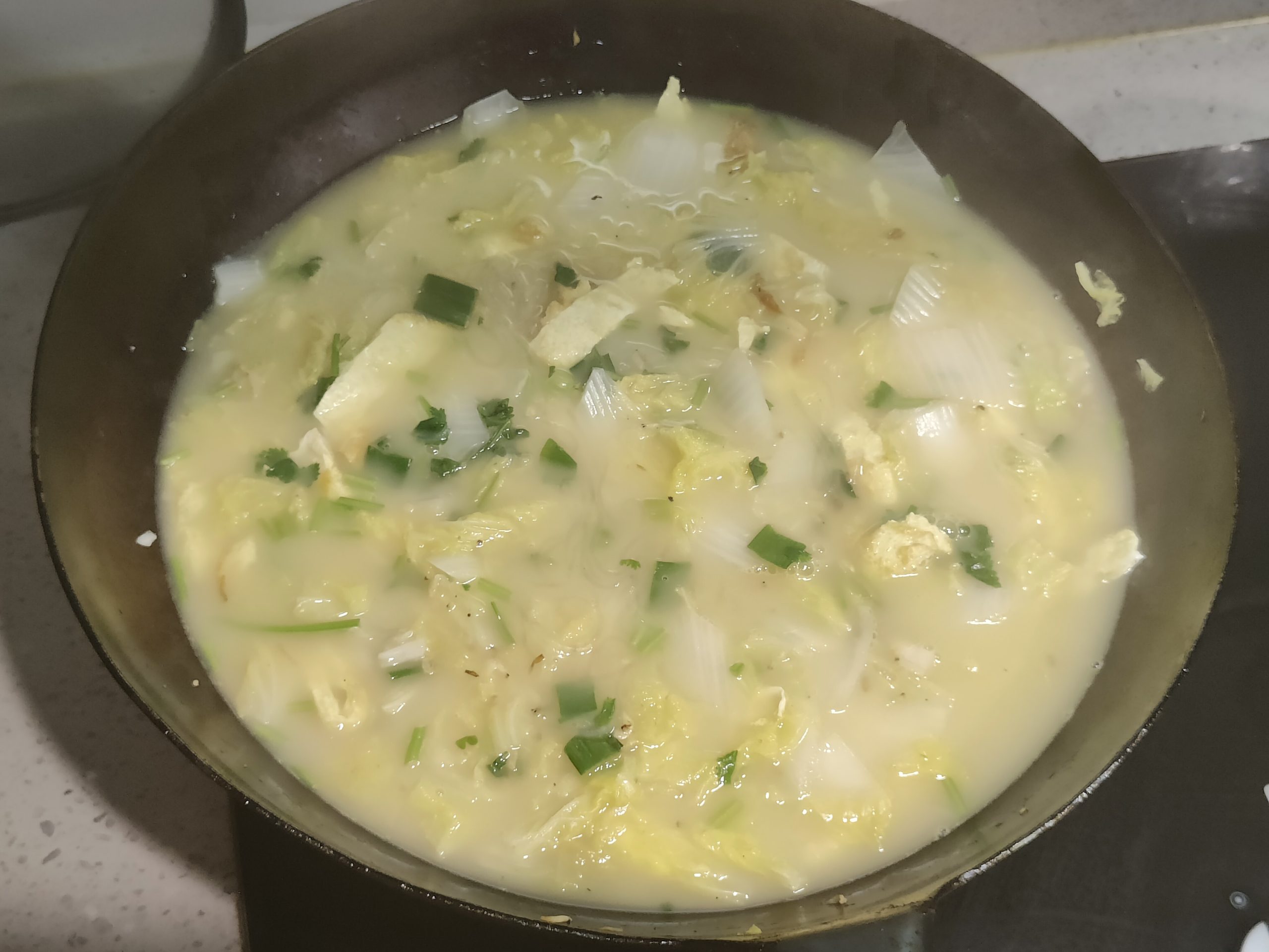 最后:别说了,找个大点的容器装起来喝吧。我真的太爱这锅汤白菜粉丝汤了,奶白的靓汤配上一个大馒头,我这颗凡人的鼻子,又闻到了人间烟的火味,就在我手中。老子又是人了哈哈哈。